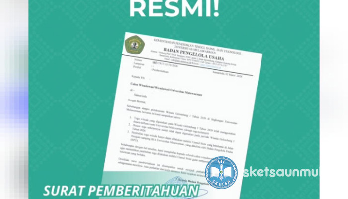 Badan Pengelola Usaha (BPU) Unmul juga turut mengeluarkan surat pemberitahuan pada Senin (2/3) lalu yang menyatakan bahwa toga terbaru wajib digunakan pada Wisuda Gelombang I Tahun 2026 dan toga dengan desain lama sudah tidak dapat digunakan pada gelombang tersebut.